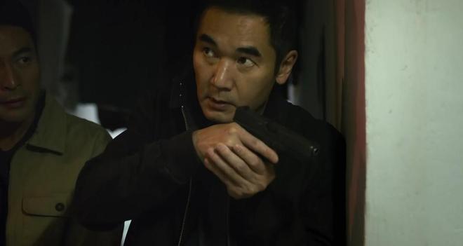 与方中信饰演的郑志斌对决时,更是展现出了不输警察的侦查力和敏锐,两人一开始的枪战,就让安志杰立住了悍匪的形象。