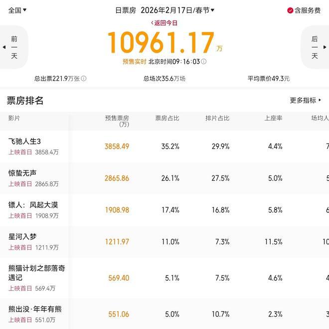 而《星河入梦》与《熊猫计划 2》不相上下,《熊出没》则是稳定发挥。